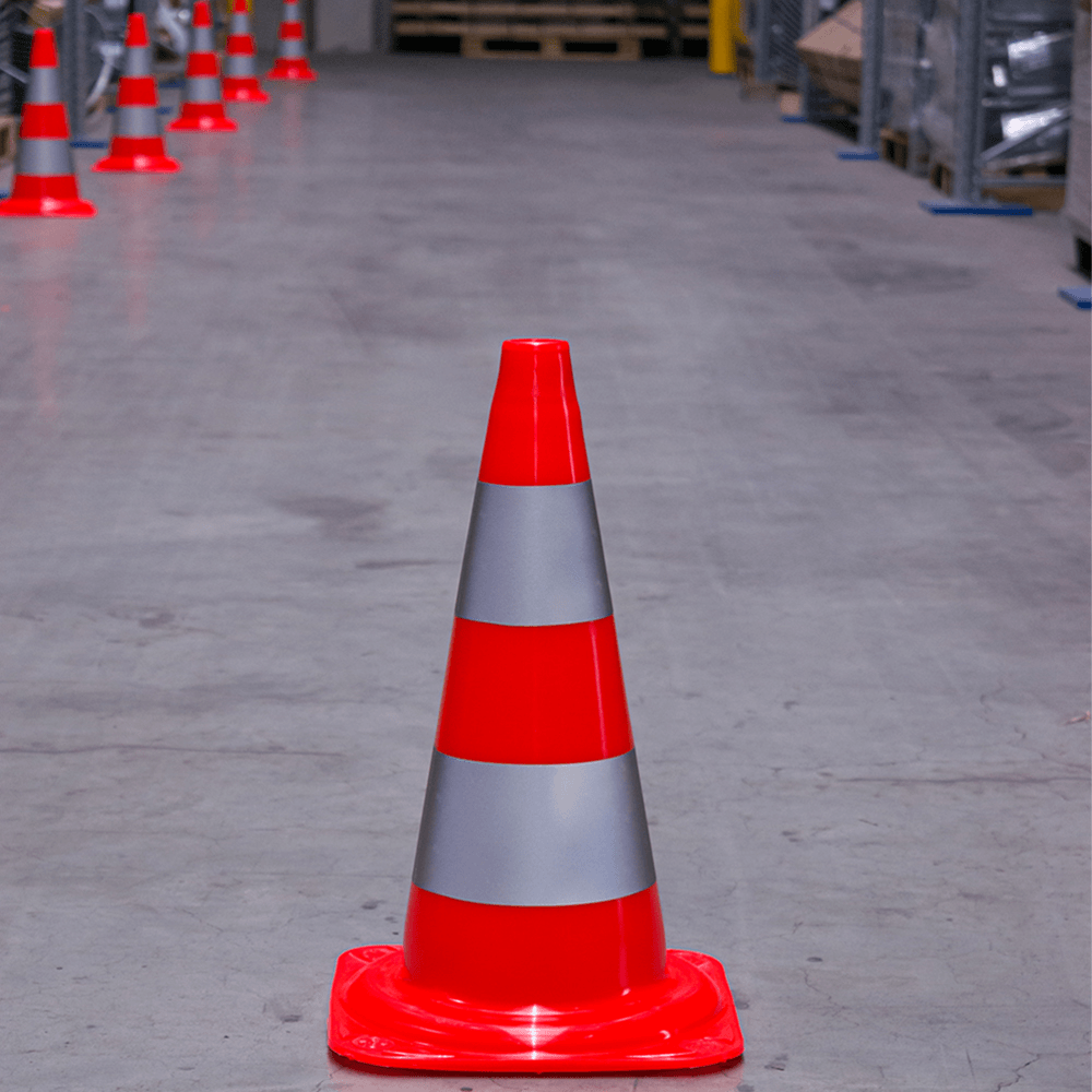 Die 50 cm hohen Leitkegel in Rot tagesleuchtend/Silber sind aus formstabilem und bruchresistentem Weich-PVC gefertigt und lassen sich hervorragend überall in Ihrem Unternehmen einsetzen: Ob in Gabelstaplerzonen, im Wareneingang, als Fahrbahnbegrenzung in Werkshallen oder auf dem Parkplatz. Sie bieten eine vielseitige Lösung für die Absicherung und Verkehrsleitung, erhöhen in jedem Bereich die Arbeitssicherheit und verringern das Unfallrisiko enorm. Die silbernen reflektierenden Streifen machen die Kegel auch bei Nacht gut sichtbar.